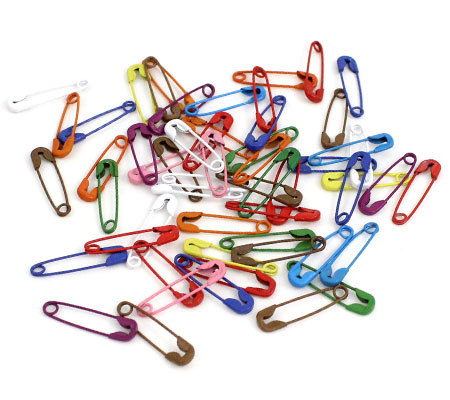 Универсальные английские булавки длиной 1,8 см с прочным замком, предотвращающим случайное расстёгивание. Выполнены из металла и доступны в трёх вариантах: серебро, золото и микс.