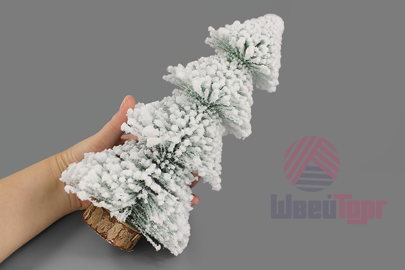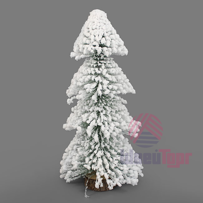 Создайте уютную зимнюю сказку с этой миниатюрной ёлочкой! Она щедро покрыта искрящимся искусственным снегом и установлена на натуральную подставку из спила дерева.