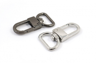 Металлический карабин №1504 с поворотным полукольцом — это надёжный и функциональный элемент фурнитуры, идеально подходящий для пошива сумок, рюкзаков, создания брелоков и других аксессуаров. Изготовлен из полированного металла с качественным покрытием, он обеспечивает долговечность использования и эстетичный внешний вид. Карабин доступен в двух цветах: никель и тёмный металл, что позволяет выбрать оптимальный вариант для различных дизайнерских решений. Поворотное полукольцо обеспечивает удобство использования и гибкость в креплении, подходит для стропы шириной 1,5 см. Надёжный пружинный механизм карабина позволяет легко и без усилий присоединить или снять элемент изделия. Общий размер карабина 2,2х4,1 см.
