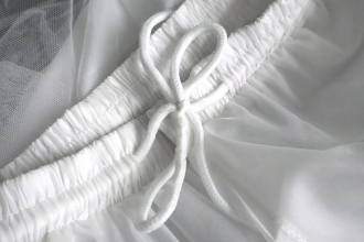 Несмотря на внушительный объём, изделие остаётся невесомым благодаря лёгким, дышащим материалам. Продуманная конструкция радует надёжностью: регулировка объёма талии осуществляется удобным шнурком, а мягкая липучка страхует завязки, исключая случайное скольжение. Особый шарм придаёт изящное кружево шириной 2,5 см по нижнему краю – оно деликатно выглядывает из-под юбки, добавляя образу романтичности. Высота подъюбника – 85 см.
