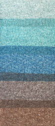 Нитки Нако Перу Колор имеют интересное окрашивание длинными секциями, причем соседние участки могут быть довольно контрастными, а не переходящими один в другой мягким градиентом. Размеры и цвета секций могут отличаться в разных мотках. Все цвета гаммы натуральные, есть нейтральные, а есть и весьма яркие. У материала легкий естественный блеск, а у полотна появляется меланжевый эффект.