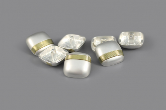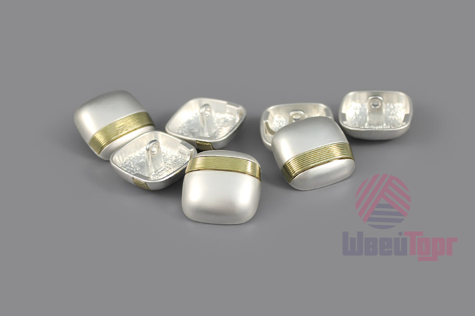 Эта пуговица на ножке выполненная в сдержанном современном стиле станет идеальным акцентом для делового гардероба. Она представляет собой лаконичный «мягкий» квадрат из металла с деликатно скруглёнными углами, имеет матовое серебристое покрытие. Её лаконичный дизайн оживляет тонкая золотистая полоска с фактурной поверхностью, проходящая по нижнему краю.