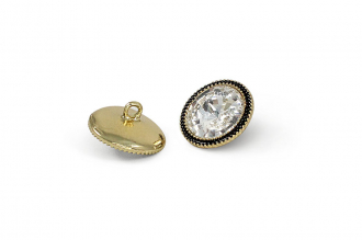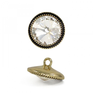Элегантная пуговица, станет изысканным акцентом вашего изделия. Её оригинальный дизайн сочетает в себе акцентную центральную часть, в виде крупной гранёной бусины, которую обрамляет контрастный декоративный обод. Пуговица эффектно переливается на свету. Диаметр пуговицы: 2 см.