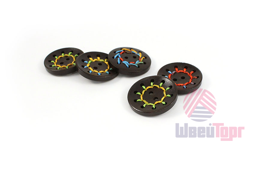 Купить в Самаре Пуговица деревянная #25-634 3 см т.коричнев./цвет. 1/20 шт по цене 234 руб. с доставкой