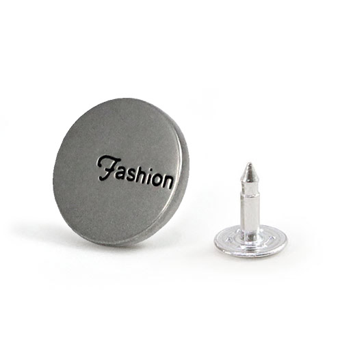 Стильная металлическая пуговица, представлена в двух вариантах – матовый никель (однотонная) и матовый никель (с контрастной тёмной надписью). Пуговица имеет плоскую форму и минималистичный декор в виде небольшой гравировки "Fashion". Эта пуговица станет стильным завершающим штрихом для ваших изделий из джинсы, будь то джинсы, джинсовые шорты или джинсовые куртки. В комплект входят надёжные гвоздики для крепления.