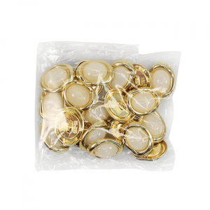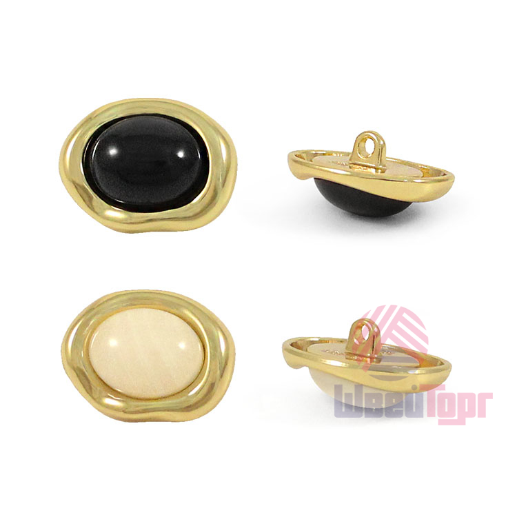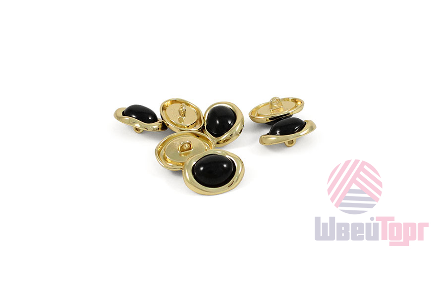 Эта пуговица напоминает миниатюрное произведение искусства. Её основа – стильный асимметричный овал, в центре которого, словно драгоценный камень, сияет выпуклая глянцевая вставка. Обрамленная золотистой «рамкой», она притягивает взгляд своей безупречной чистотой линий и лаконичностью.