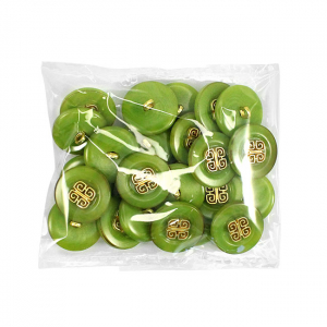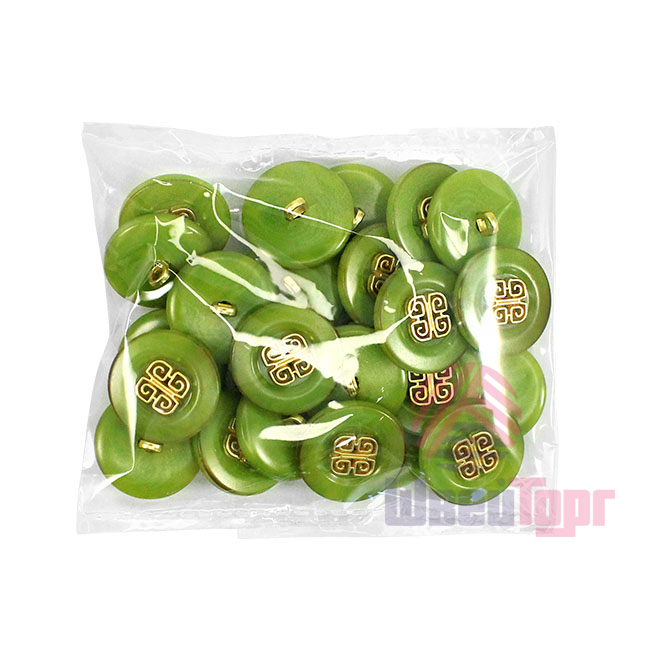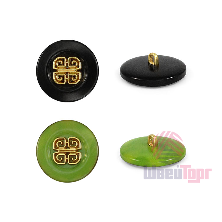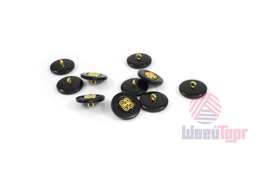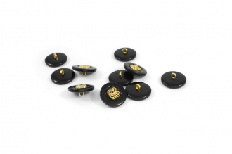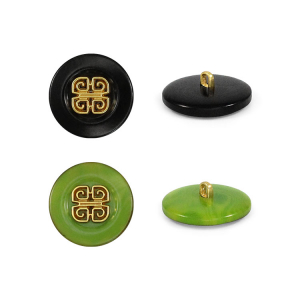Главная особенность данной пуговицы – декоративный накладной элемент, который создаёт яркий акцент. Благородный блеск золотого центрального элемента, эффектно контрастирует с основными цветами пуговицы – кремовым, зелёным и чёрным, позволяя подобрать идеальный вариант под любой стиль.
