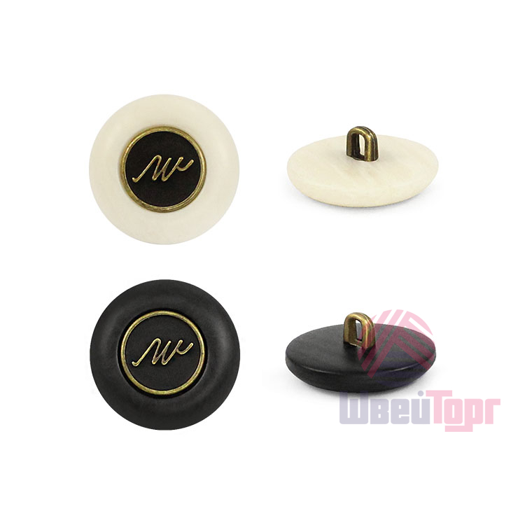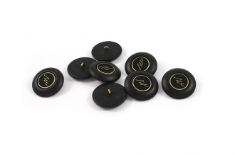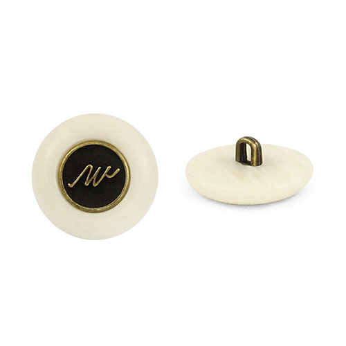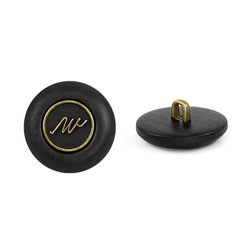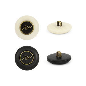 Пластиковая пуговица на ножке для создания стильного образа. Пуговица собрана из двух частей – матовая, с эффектом разводов основа и бронзовый накладной элемент, в виде стилизованной надписи. Сдержанный и интересный элемент для оригинального образа. Пуговица предсталена в двух расцветках: молочный и чёрный.
