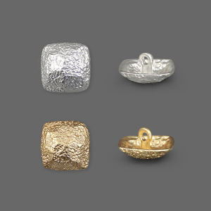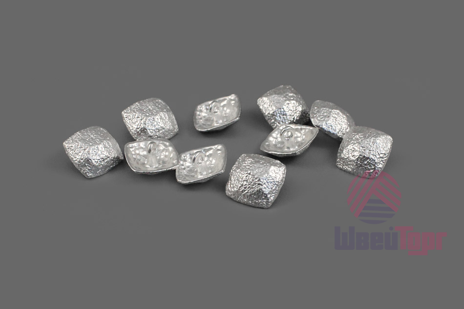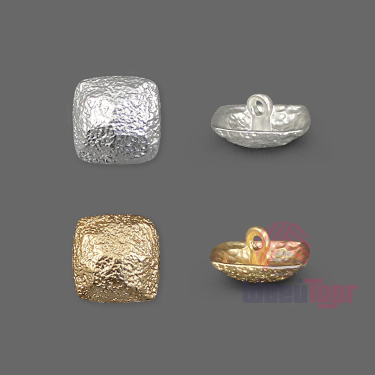 Стильная металлическая пуговица на ножке, имеет квадратную форму с мягкими углами - 15х15 мм. Пуговица станет отличным украшением ваших костюмов, жакетов и стильных рубашек.