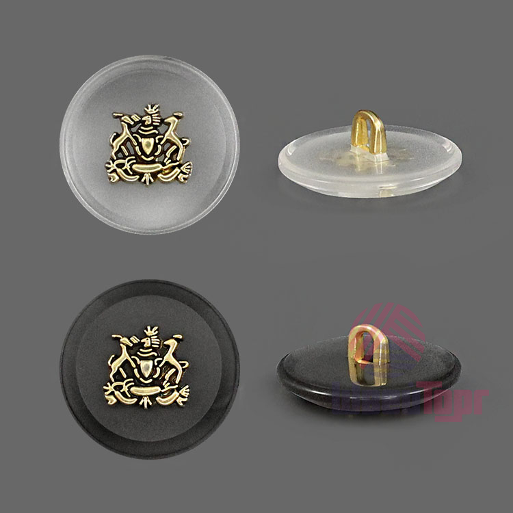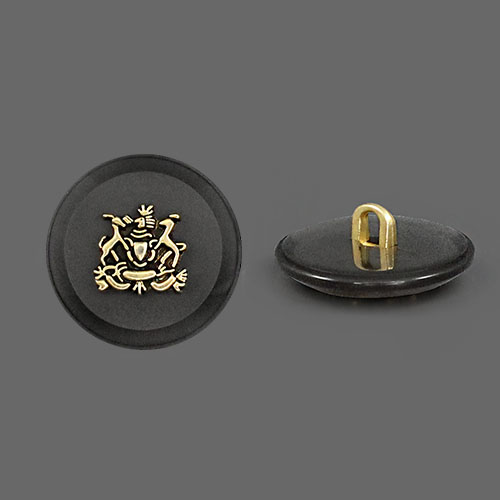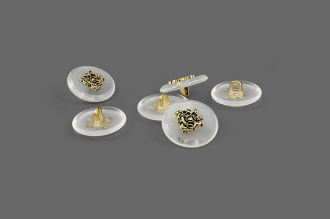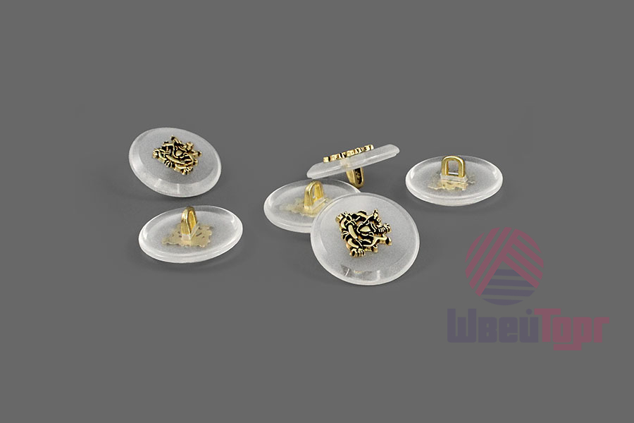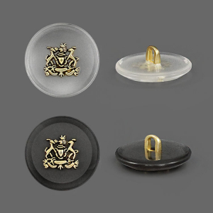 Пластиковая пуговица на ножке для создания стильного образа. Пуговица собрана из двух частей – полупрозрачная матовая основа и золотистый накладной элемент, в виде стилизованного герба. Сдержанный и интересный элемент для оригинального образа.