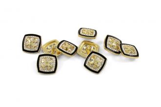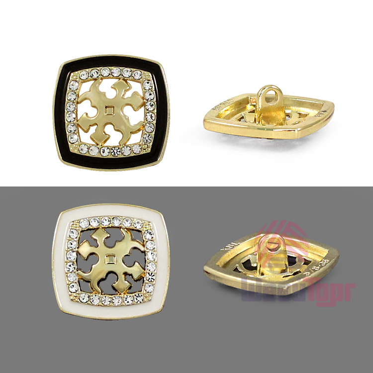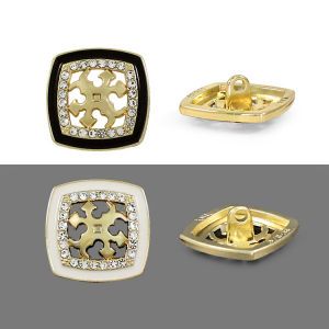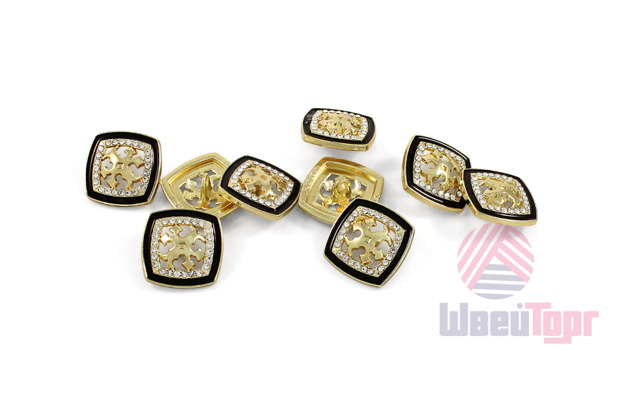Позвольте вашему наряду расцвести! Эта металлическая пуговица напоминает драгоценную миниатюру. Её оригинальный дизайн завораживает: основа из золотистого металла, с контрастным чёрным ободком по краю, всё это прекрасно гармонизирует с акцентным резным элементом в самом центре и тонкой рамкой из мелких страз.