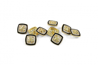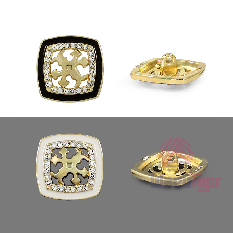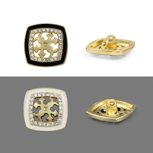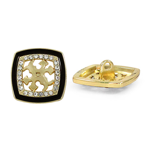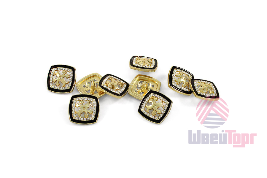 Позвольте вашему наряду расцвести! Эта металлическая пуговица напоминает драгоценную миниатюру. Её оригинальный дизайн завораживает: основа из золотистого металла, с контрастным чёрным ободком по краю, всё это прекрасно гармонизирует с акцентным резным элементом в самом центре и тонкой рамкой из мелких страз.
