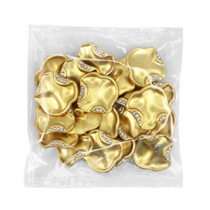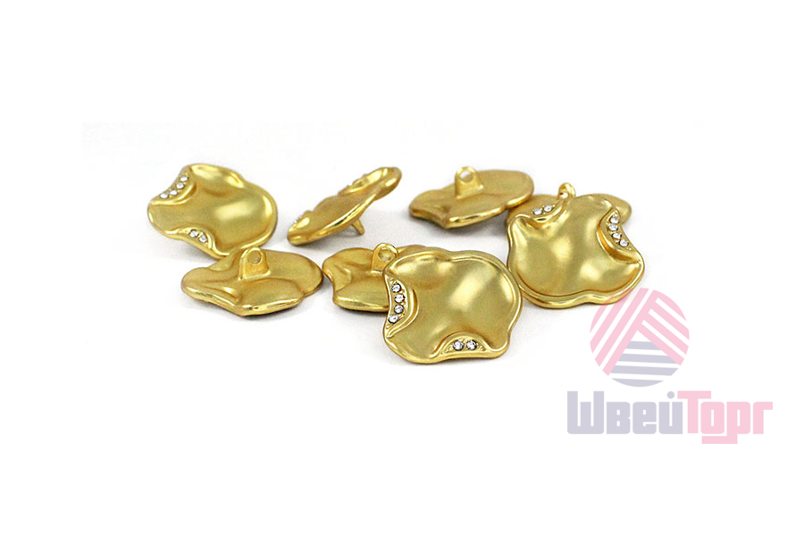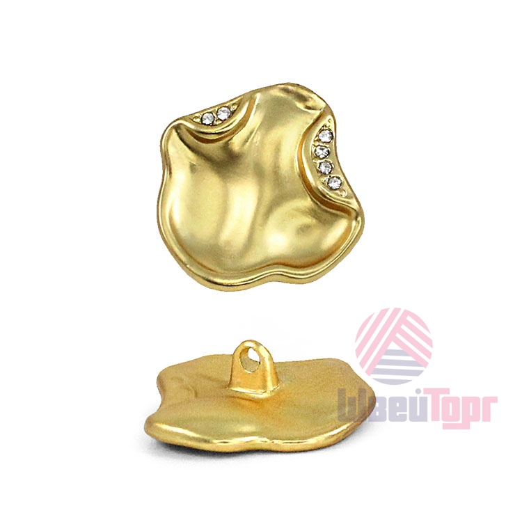 Оригинальная пуговица для тех, кто ценит современный дизайн и внимание к деталям. Её уникальная форма в виде «кляксы» и матовое золотое покрытие создают сдержанный и стильный акцент. Мерцание мелких стразов добавляет нотку роскоши, делая эту пуговицу идеальным выбором для дизайнерских проектов и преображения вашего гардероба.