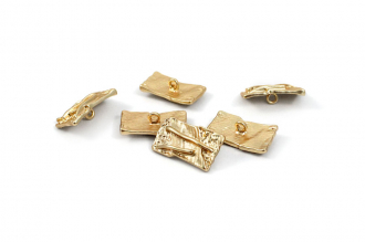 Эта пуговица на ножке сразу привлекает внимание своей нестандартной прямоугольной формой и уникальной фактурой, напоминающей объёмные стилизованные складки. Такой выразительный дизайн делает её настоящим акцентом, способным преобразить и украсить любой предмет одежды. Пуговица представлена в двух благородных цветах – матовое серебро и матовое золото, что позволяет подобрать идеальную фурнитуру для вашего проекта, добавляя ему индивидуальности и стиля.