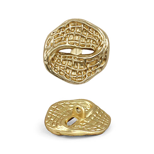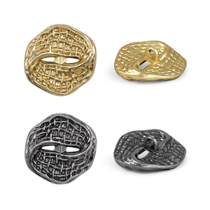 Эта металлическая пуговица на ножке привлекает внимание своим уникальным дизайном. Пуговица напоминает плоское перекрученное кольцо, дополненное выразительной фактурной поверхностью. Дизайн пуговицы – это баланс смелой оригинальности и сдержанного минимализма. Такие пуговицы станут идеальной стильной деталью для жакета или костюма, добавляя образу индивидуальности и современное звучание.