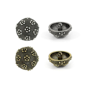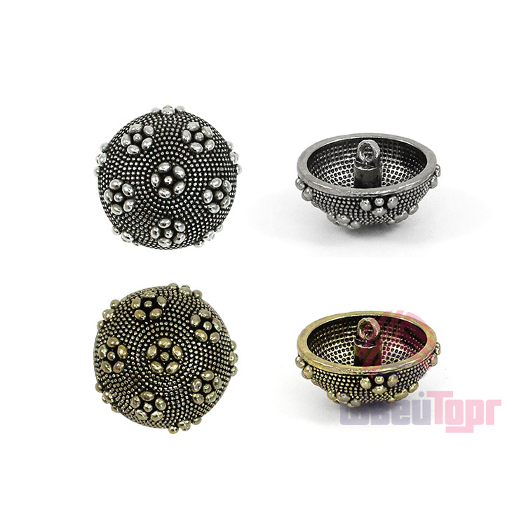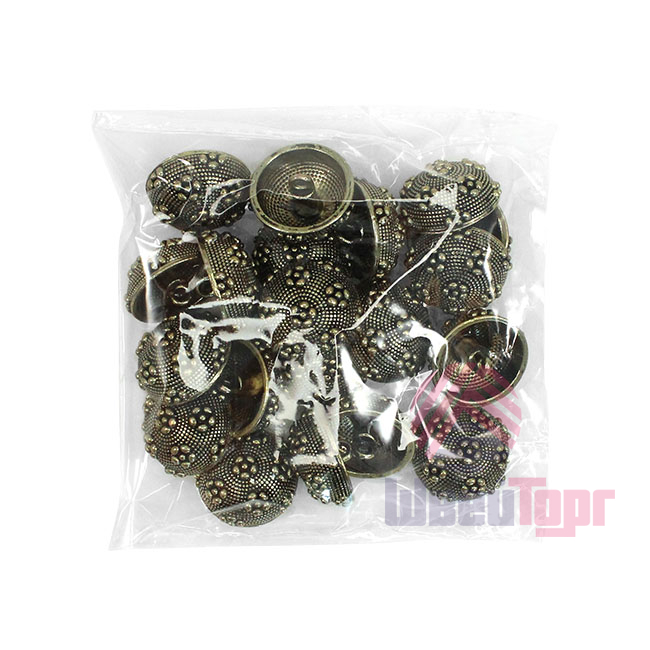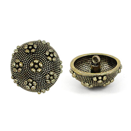 Пуговица доступна в двух цветах – чернённый и антик – оба варианта выгодно подчёркивают рельефную поверхность и добавляют пуговице нотку роскоши. Прочная ножка обеспечивает удобное пришивание, а необычный дизайн делает эту пуговицу настоящим акцентом в любом образе. Данные пуговицы прекрасно подойдут для ваших костюмов и жакетов.