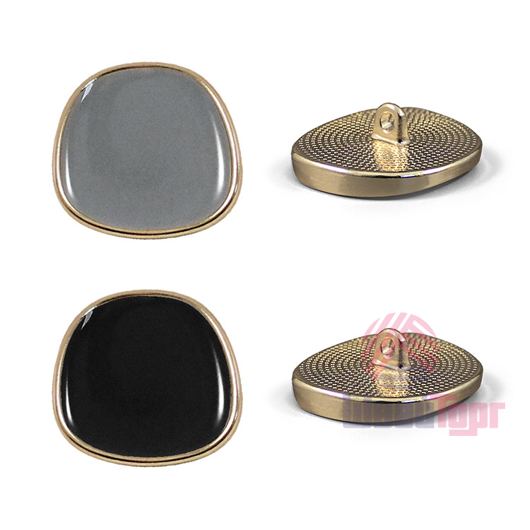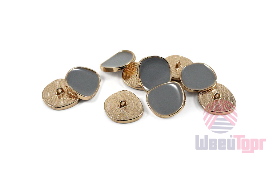 Металлическая пуговица на ножке, имеет неправильную форму (габаритный размер - 22х21 мм), станет отличным украшением ваших костюмов или жакетов.