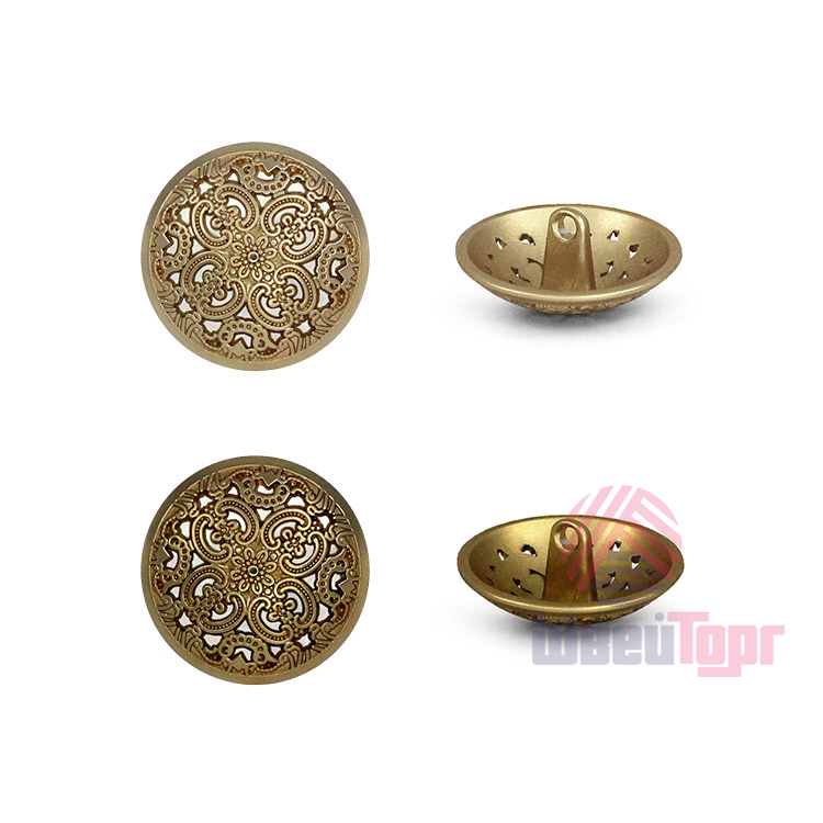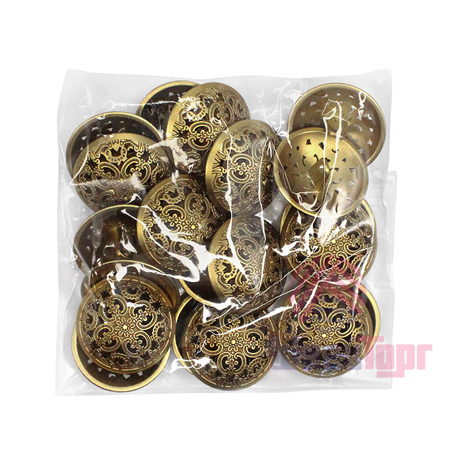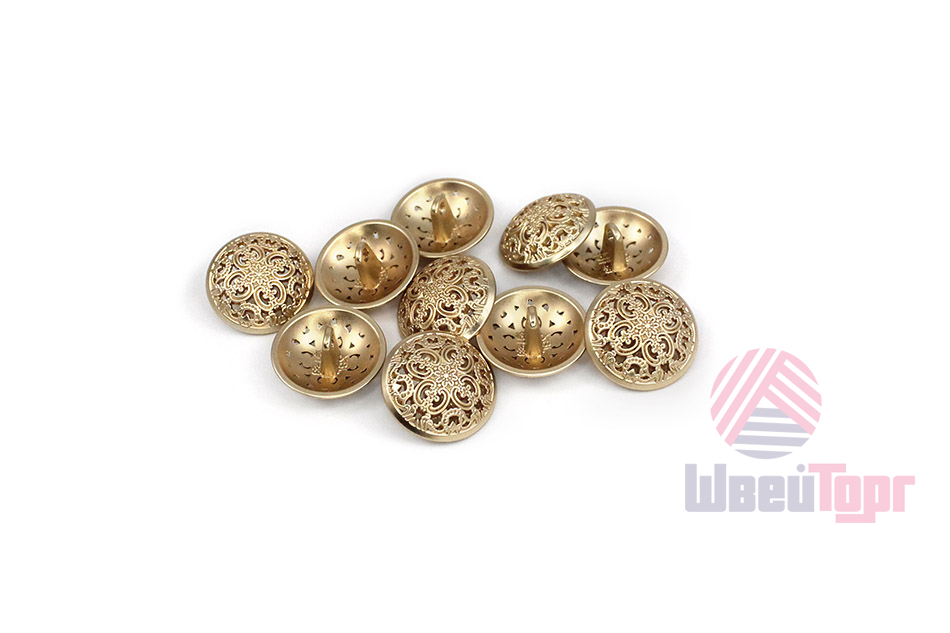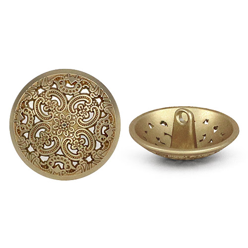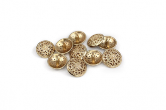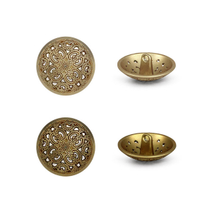 Позвольте вашему наряду расцвести! Эта металлическая пуговица напоминает драгоценную миниатюру. Её сложный, резной дизайн завораживает: ажурная резьба в виде геометрических и растительных орнаментов делает эту пуговицу маленьким шедевром.