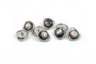 Эта пуговица напоминает миниатюрное произведение искусства. Её основа – стильный асимметричный обод, в центре которого, словно драгоценный камень, сияет выпуклая глянцевая вставка. Пуговица притягивает взгляд своей безупречной чистотой линий и лаконичностью. Представлена в двух вариантах: меланж/серебро и белый/золото.