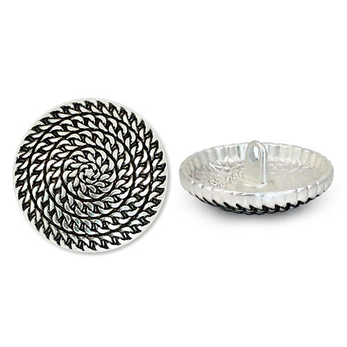 Стильная металлическая пуговица на ножке, имеет диаметр - 20 мм. Пуговица станет отличным украшением ваших костюмов и жакетов.