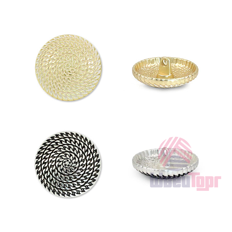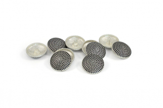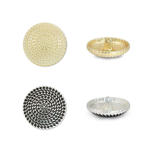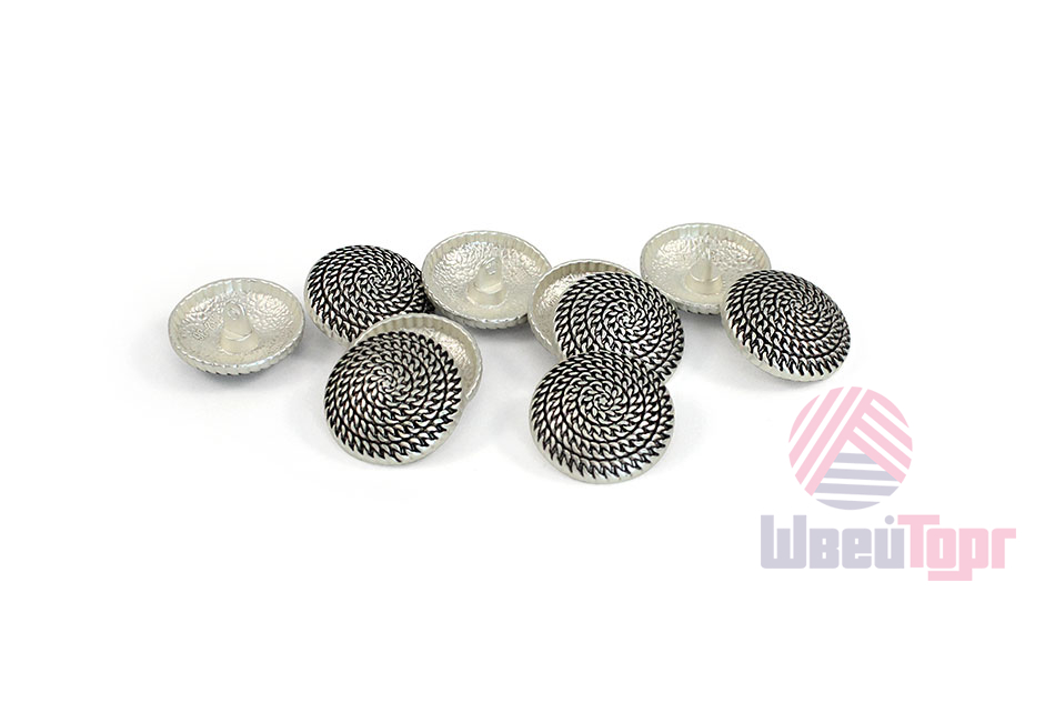Эта пуговица на ножке сразу привлекает внимание своей уникальной фактурной поверхностью в виде имитированных цепей. Такой выразительный дизайн делает её настоящим акцентом, способным преобразить и украсить любой предмет одежды. Пуговица представлена в двух благородных цветах – серебро и светлое золото, что позволяет подобрать идеальную фурнитуру для вашего проекта, добавляя ему индивидуальности и стиля.