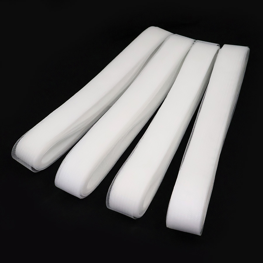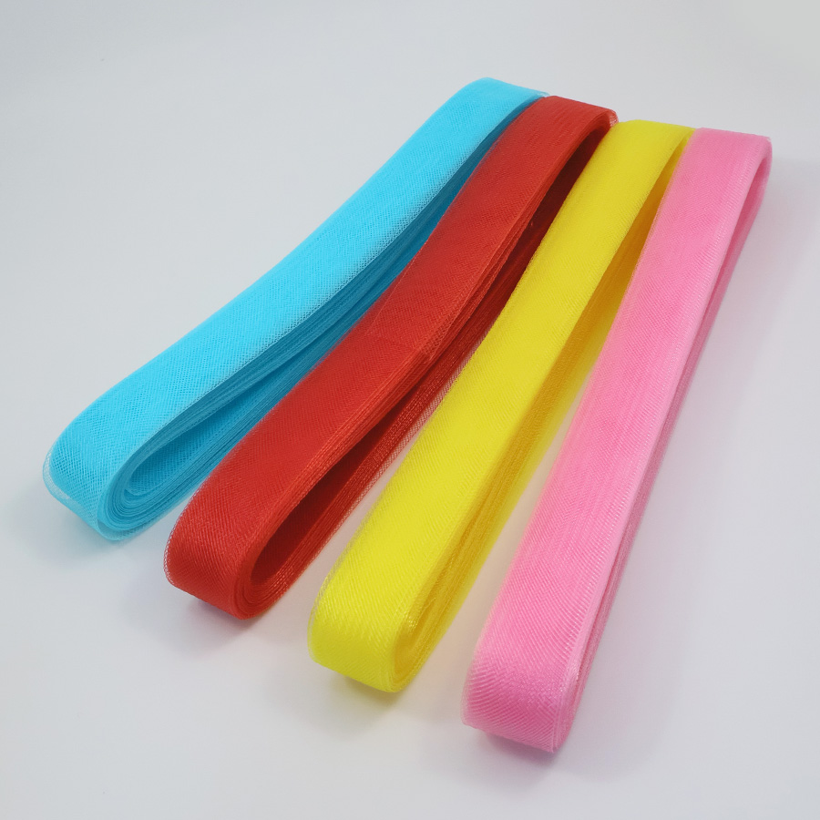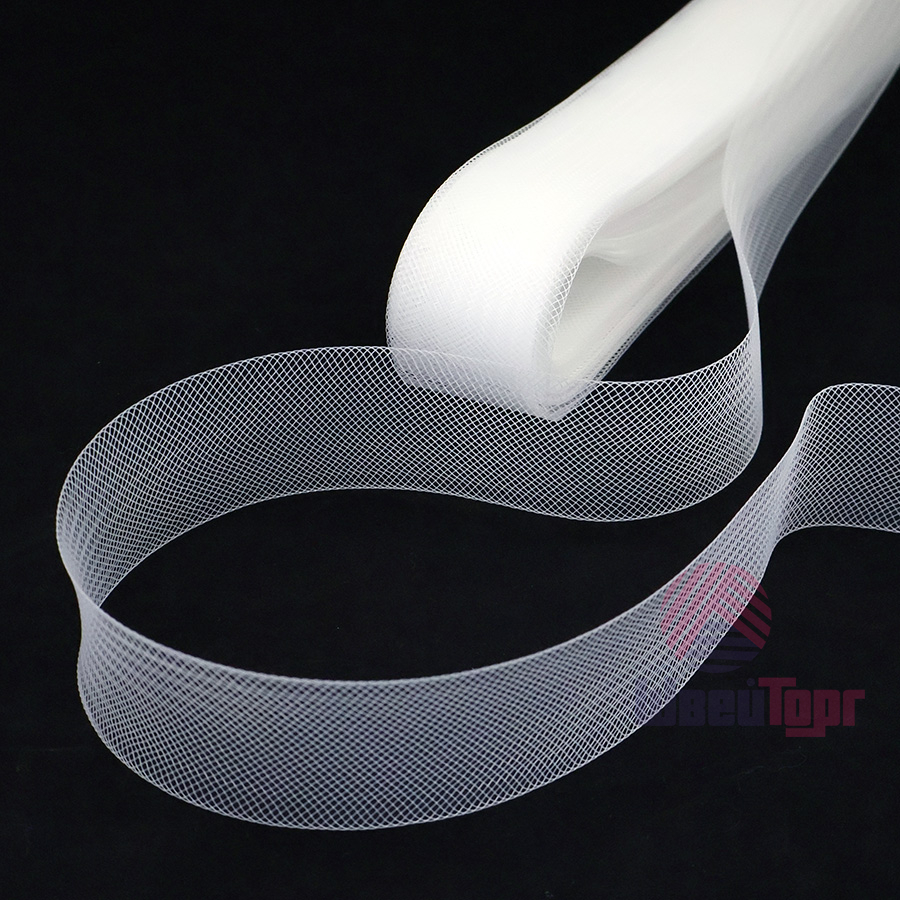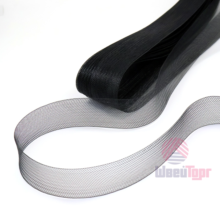 Кринолиновая сетка в виде ленты предназначена для придания объёма или формы тканям (фатин, органза и т.д.) при пошиве свадебных, вечерних или детских платьев. Многие называют кринолиновую ленту - широкий регилин. Чаще всего такую ленту притачивают с изнаночной стороны юбки типа "солнце".
