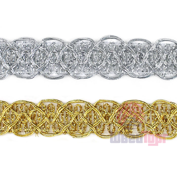 Тесьма доступна в двух цветах: золото и серебро. Она идеально подходит для отделки одежды, декора сценических костюмов, а также для украшения головных уборов и элементов интерьера. Представляет собой прочную плетёную, рельефную тесьму с повторяющимся геометрическим узором. Тесьма пронизана металлизированными нитями, что придаёт ей уникальный блеск. Создавайте свои неповторимые изделия!
