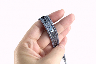 Декоративная тесьма с пайетками служит акцентной отделкой для разнообразных проектов, от скрапбукинга до пошива национальных и сценических костюмов. Плетение тесьмы создаёт красивый узор, а добавление пайеток придаёт мерцающий эффект.
